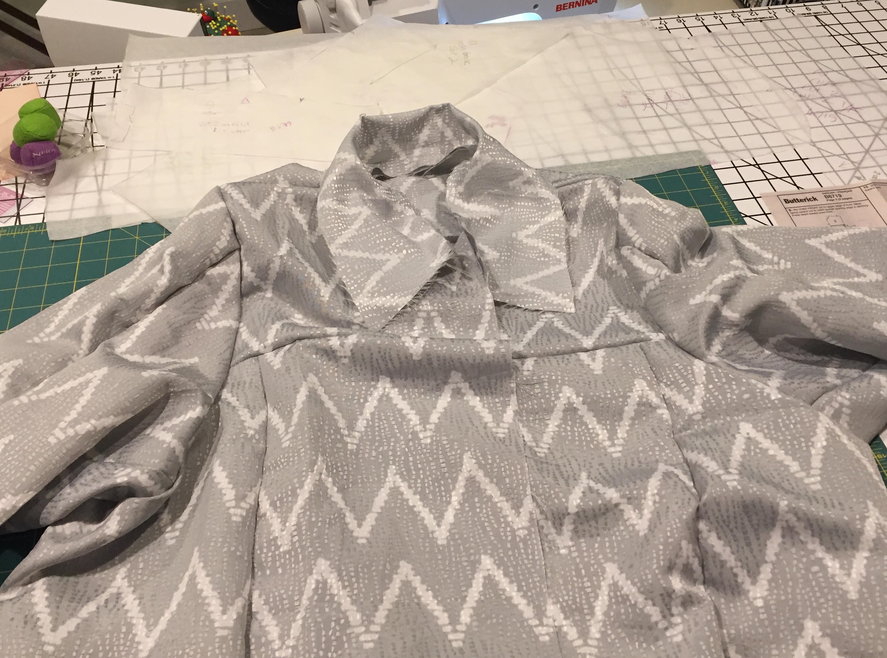 I didn’t finish the entire jacket, I merely needed to check shoulder fit, sleeve fit, and overall length. And, as it turns out, the grading was almost too much. I will trim that back in the first actual jacket I make.