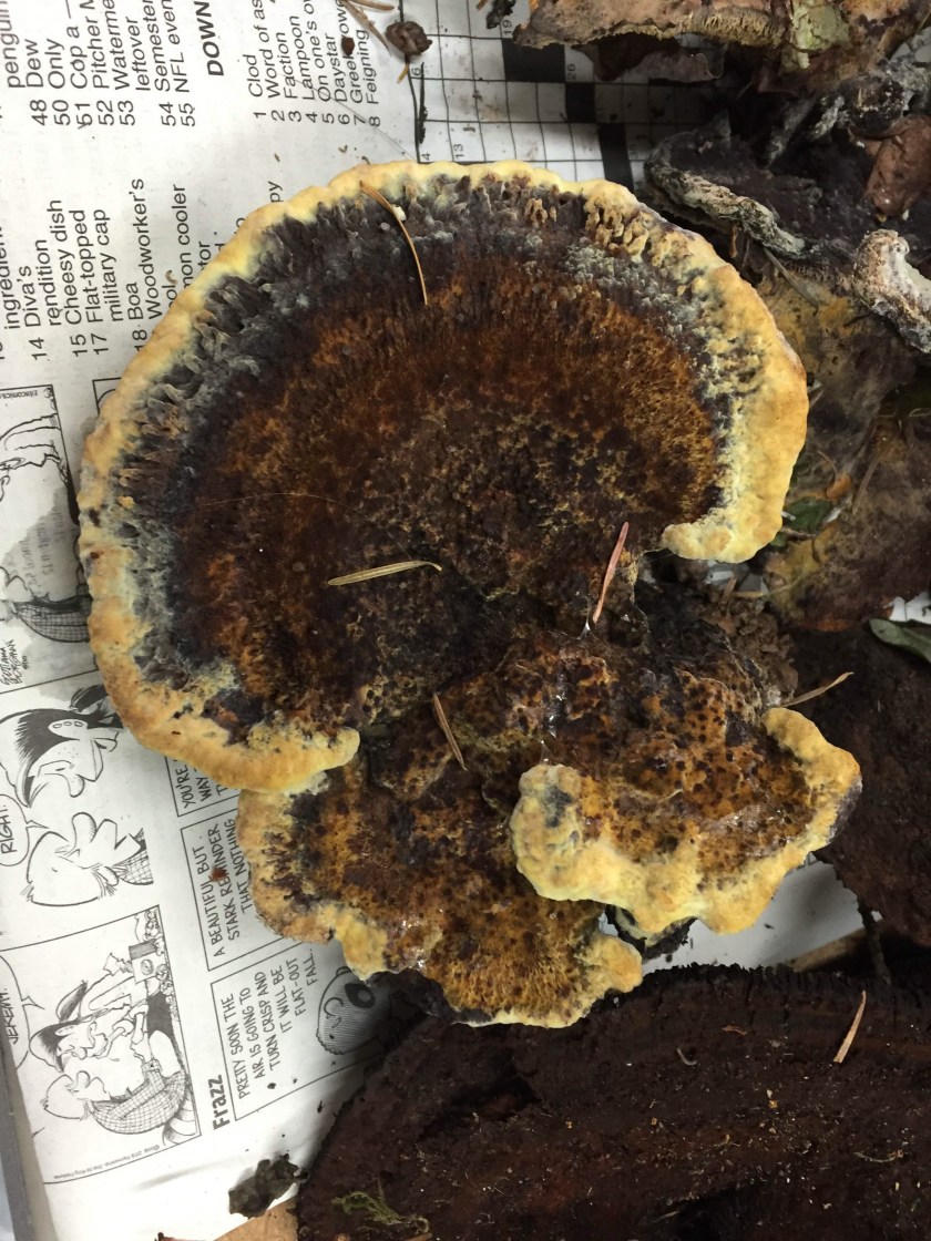 I took an afternoon hike foraging for dye mushrooms. I found a smallish dyers polypore
